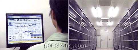 我們選擇GP-2500T的主要原因是因為它加強了我們的控制系統,而且,提供我們更精確的空調控制。我們在每個房間的入口安裝一個GP,然后把它連到那個房間中用來控制溫度、濕度、氣壓、氣流、亮度和控制其它因素的PLC上。只需看一眼GP,而不用開門,我們就能檢測到房間內的所有情況,而且,最大可能地保持了房間條件的穩定性。