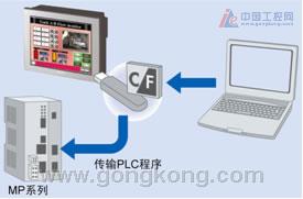 為了提高現場維護的便利性,Pro-face提供了不使用PC的情況下傳輸PLC程序的現場解決方案,維護人員可以不攜帶PC,將安川電機MP系列的PLC程序存儲在CF卡或U盤中,帶到現場直接插入Pro-face的GP/ST3000系列人機界面中,透過人機界面將PLC程序傳輸到MP系列中,參見圖四。