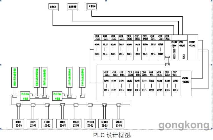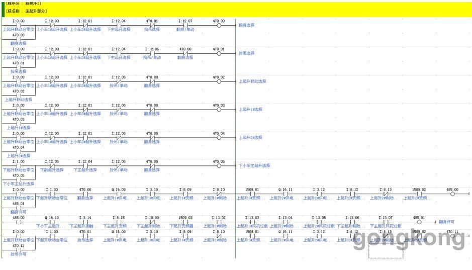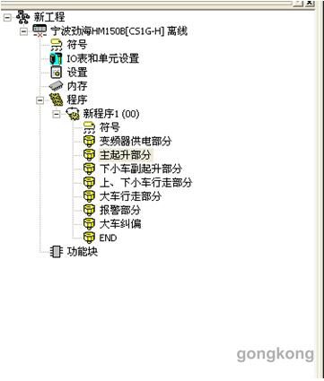 本控制系統采用歐姆龍CS1G-H的PLC,通過程序控制,可以使得主起升機和副起升機構聯合實現吊物的抬吊、翻身動作。另外還控制大小車行走機構動作以及大車運行機構的糾偏實現。