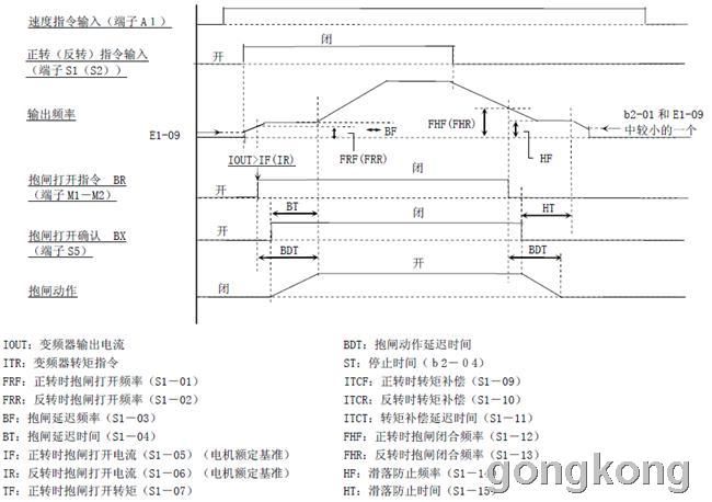 5)起動時發生摩擦抱閘,調整S1-05~08參數,調整抱閘打開電流。