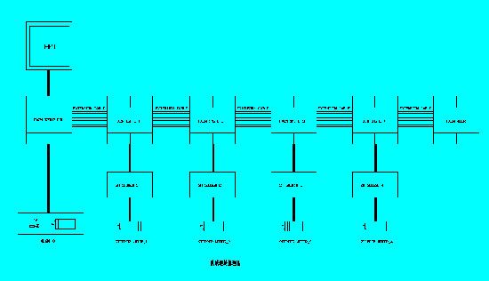 本系統(tǒng)由一個FX2N-128MR-001主體CPU,一個FX2N-48ER擴展模塊,四個脈沖定位控制模塊FX2N-1PG,一個人機界面(HMI),四個步進(jìn)馬達(dá)驅(qū)動模塊組成。
