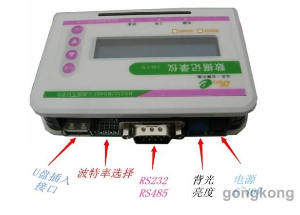 由于現場的使用環境比較惡劣,不能人工值守,所以我們系統里面加了一套優盤記錄數據的儀表。歐姆龍PLC通過自由口發送數據至這臺數據記錄儀,當需要查看的時候,取下優盤,可以查看PLC在過去一定時間內,經歷了哪些報警,流量,壓力等數據是多少。
