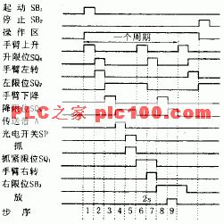 根據對機械手的順序動作要求,可以畫出時序圖如圖2所示。由時序圖可作出圖3所示的機械手動作流程圖。
