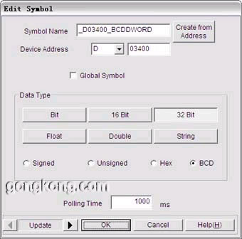 正確選擇Data Type和Device Address后點(diǎn)擊Create from Address將自動生成Symbol Name,雖然Symbol Name是可以修改的,但我們建議您使用自動生成的名稱,這個名稱是保證正確且不重復(fù)的。
