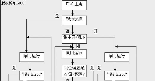 現場一號控制柜的軟件編寫如下:系統的自動控制功能可分為現場級控制、集中開/閉環控制。其控制的程序流程圖如圖3。現場控制級具有最高的優先級,這是由于對閘門的控制要求有較高的安全性和可靠性。當選擇現場級控制后,集中開/閉環控制都被屏蔽。PLC采集現場控制柜的升、降、停控制輸入狀態,對閘門進行升降停操作。此時閘門的開度信息、運行狀態可以在現地控制柜上的文本顯示屏進行顯示輸出,并同時上傳到監控主機顯示。如發生錯誤,則發出報警并停止閘門運行。