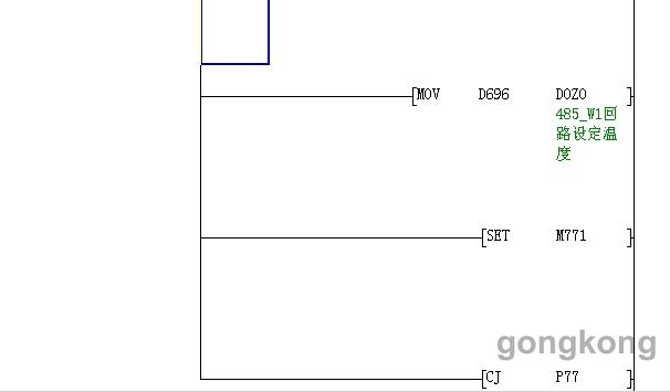 變頻的速度以及補(bǔ)償速度由用戶通過(guò)觸摸屏進(jìn)行輸入,PLC接到觸摸屏輸入的數(shù)據(jù)后,經(jīng)過(guò)運(yùn)算處理,通過(guò)通訊模塊傳送給變頻器。溫度控制是通過(guò)儀表控制,PLC通過(guò)和儀表進(jìn)行485通訊,在觸摸屏可以看到溫度,設(shè)定溫度.