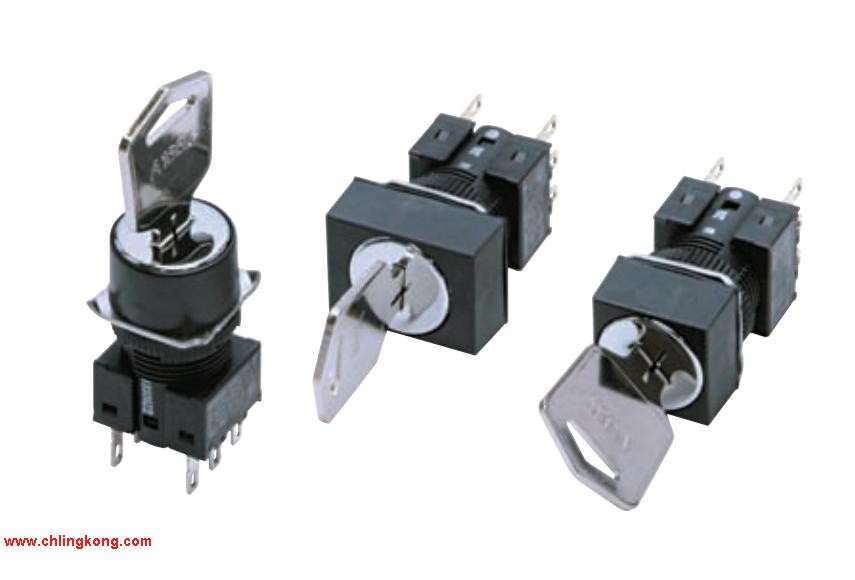 操作:交替動作 (自我保持型)歐姆龍鑰匙型φ16選擇開關。