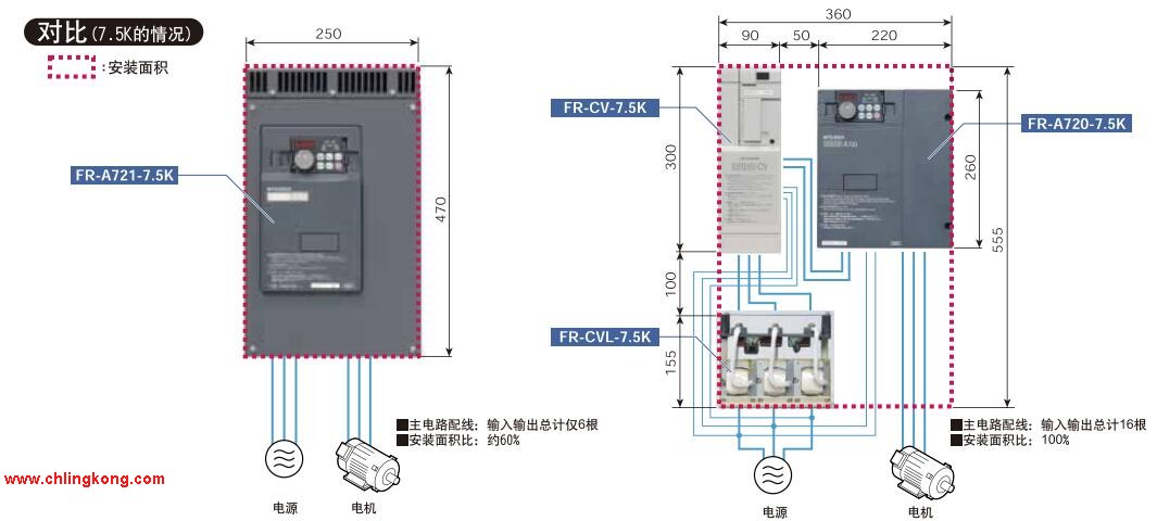 能夠使設(shè)備尺寸得到縮減(與FR-A700系列相比,減小設(shè)備體積)三菱共直流母線變流器。