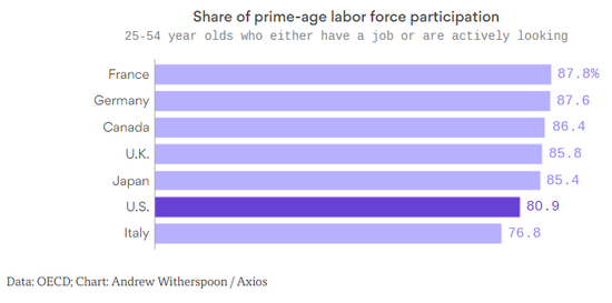為說明這個問題自動化 薩默斯給出了一組數據:1968年自動化 25-54歲“黃金年齡”美國人的失業率為5%;今天這個數字達到15%。美國這個年齡段群體的勞動參與率為80.9%,落后于大多數西歐國家。