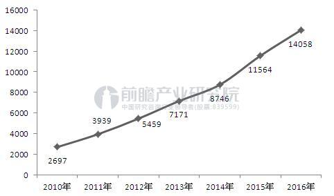 圖表1:2010-2016年伺服電機行業相關專利申請數量變化圖(單位:項)