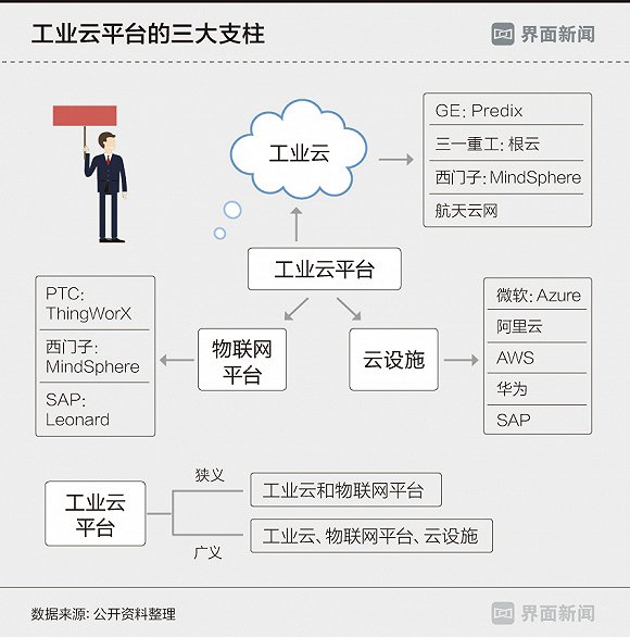 南山工業(yè)書院發(fā)起人、北京聯(lián)訊動力咨詢公司總經(jīng)理林雪萍向界面新聞記者介紹,云設(shè)施屬于基礎(chǔ)應(yīng)用Iaas層,比如亞馬遜的AWS、微軟的Azure、阿里云等;工業(yè)云是體現(xiàn)在工業(yè)領(lǐng)域的具體應(yīng)用,是支撐內(nèi)容應(yīng)用、具體運營的平臺,以PaaS層(Platform-as-a-Service,平臺即服務(wù))為主、少量的SaaS層(Software-as-a-Service軟件即服務(wù))為輔,例如GE的Predix、三一重工的根云等。