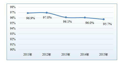 “十二五”期間通過工程教育專業認證的工科專業畢業生一次就業率變化情況